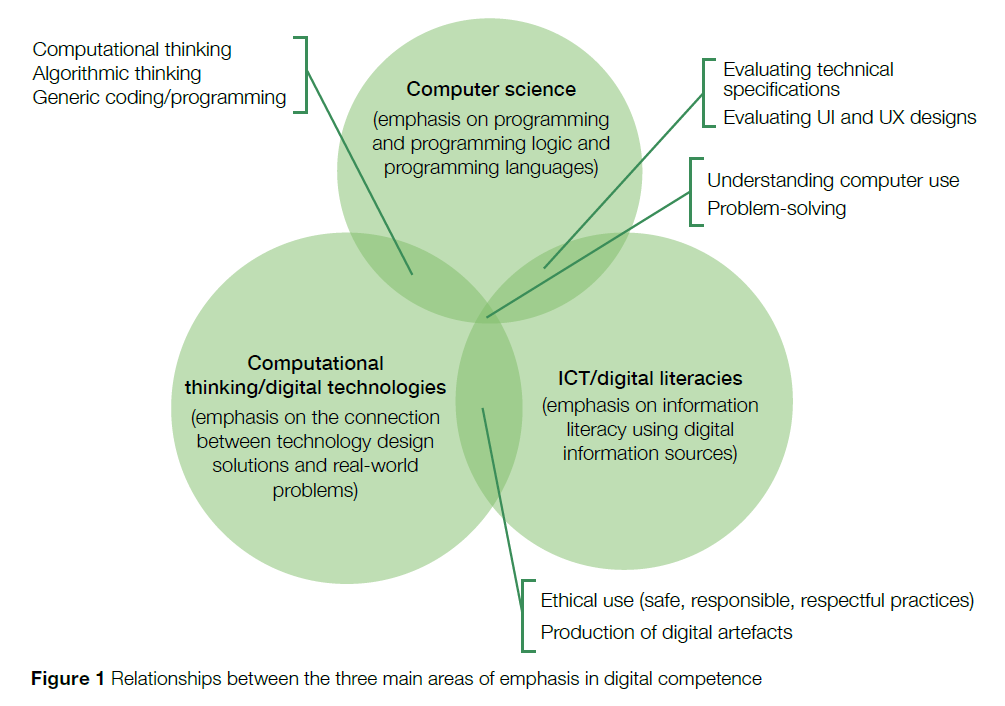 Mr Fraillon, who is also the director of the 2018 International Computer and Information Literacy Study (ICILS), says three main areas of emphasis in digital competence have evolved over recent decades: computer science; ICT/digital literacies; and computational thinking/digital technologies.
